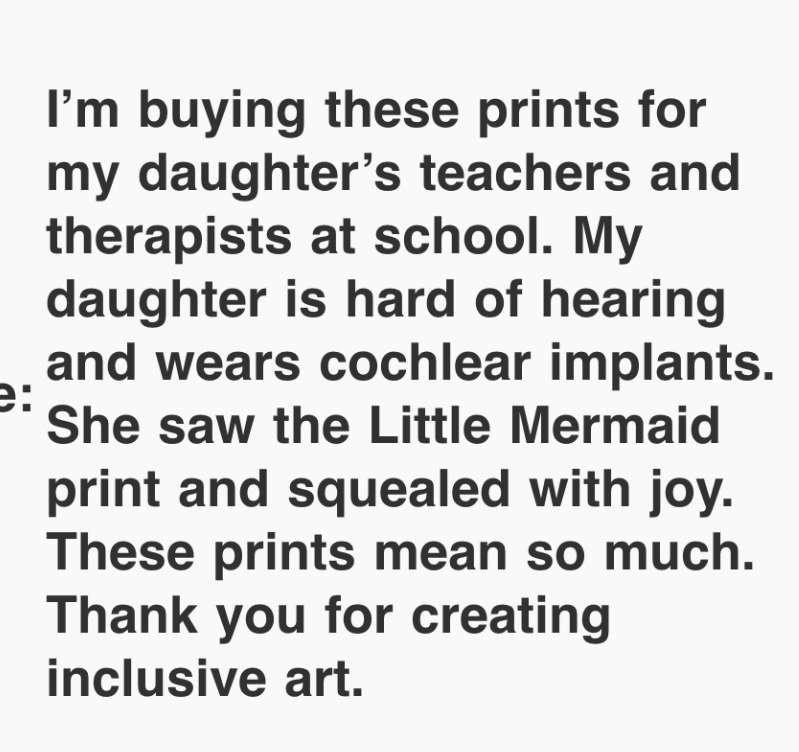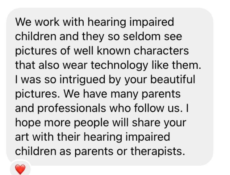 Additionally, I offer engaging talks about my personal journey with hearing loss and how art bridges the gap between medicine and human experience.”