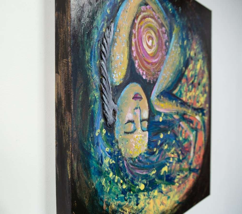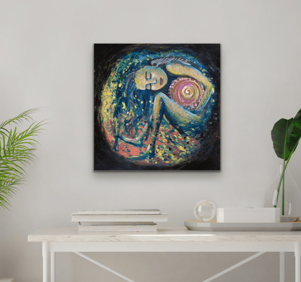 Original mixed media painting that embodies the essence of transformation and self-discovery. It invites you to embrace the moment when you create a new life, one that aligns with your purest essence and lights the path toward a stronger, more harmonious, and loving version of yourself.