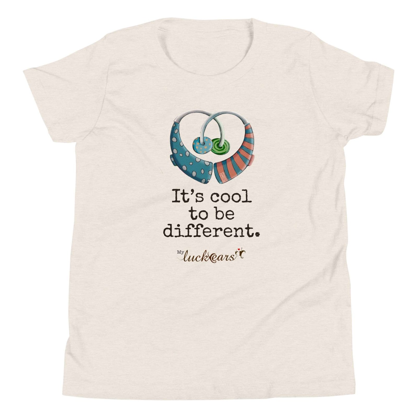 Celebrate individuality with the It’s Cool to Be Different youth T-shirt, featuring vibrant hearing aids design. Perfect for kids who embrace their hearing differences with pride, this tee promotes inclusion, confidence, and self-expression. Comfortable, stylish, and empowering, it’s ideal for young advocates who know that being different makes them amazing!