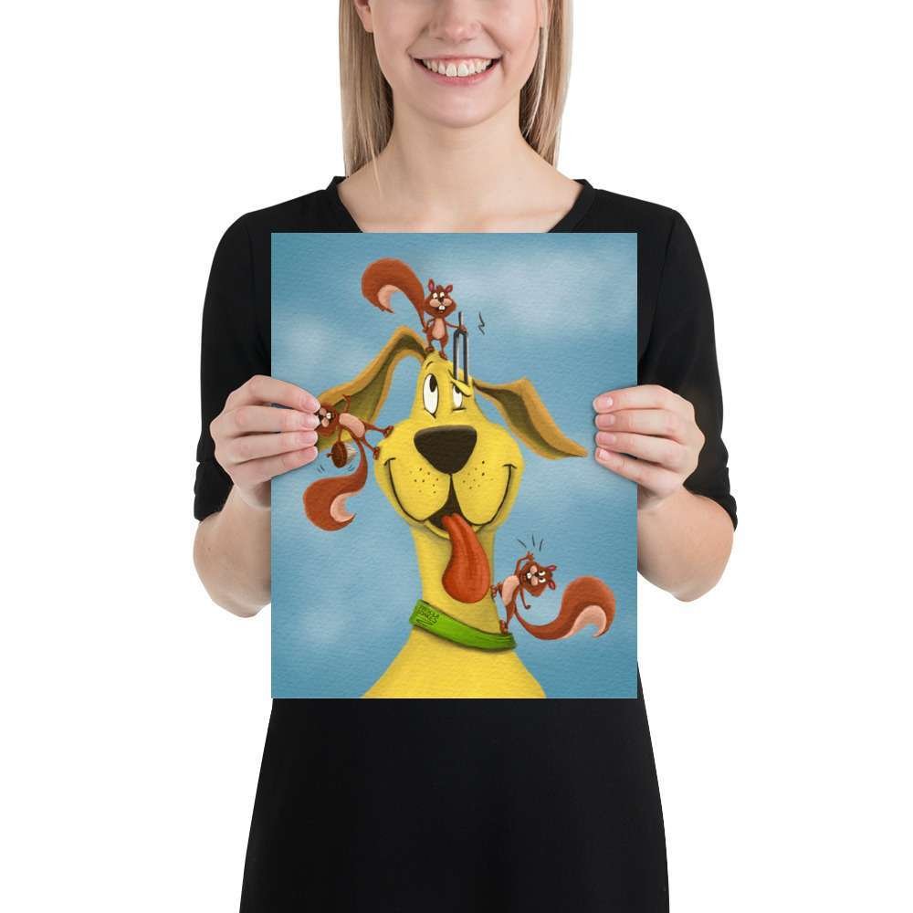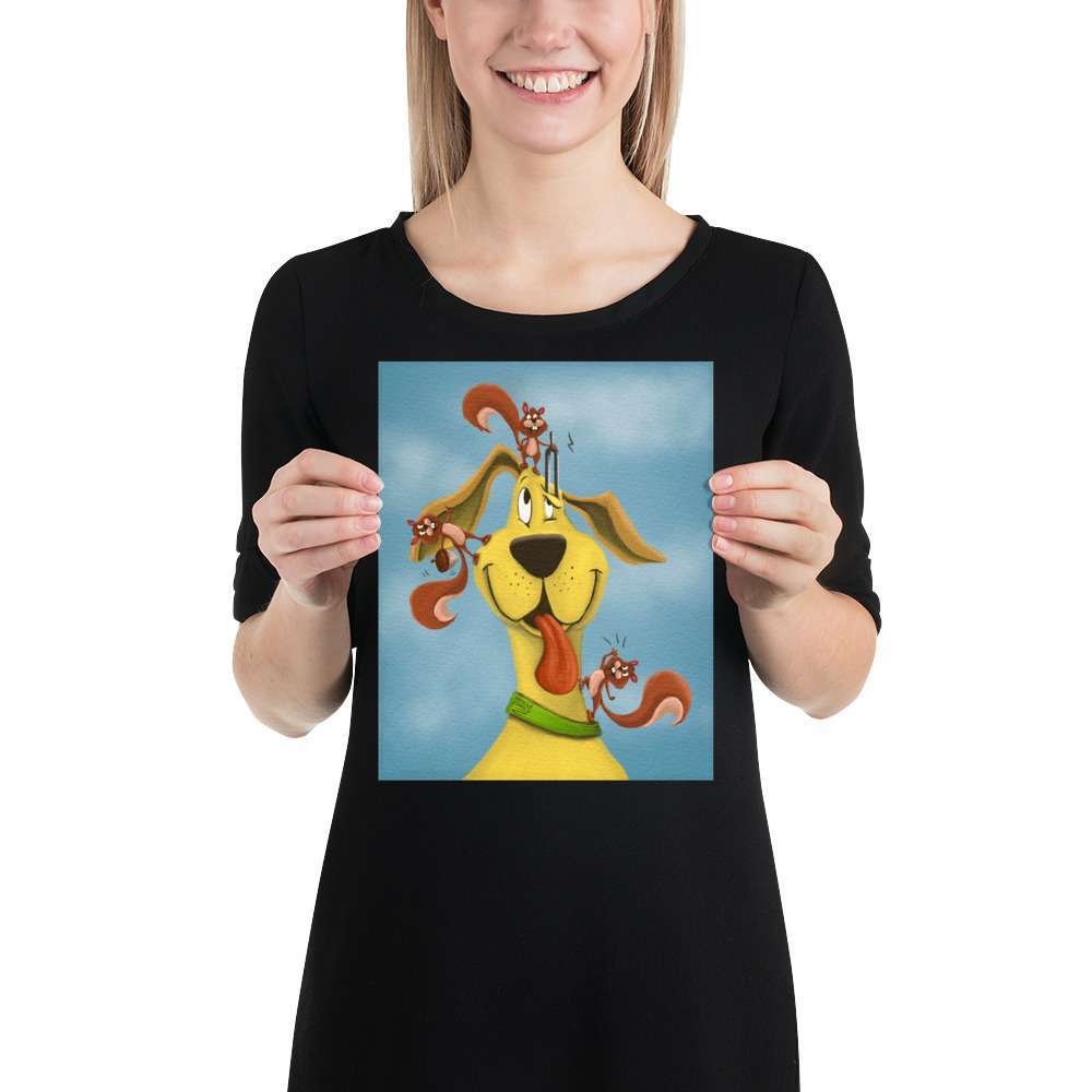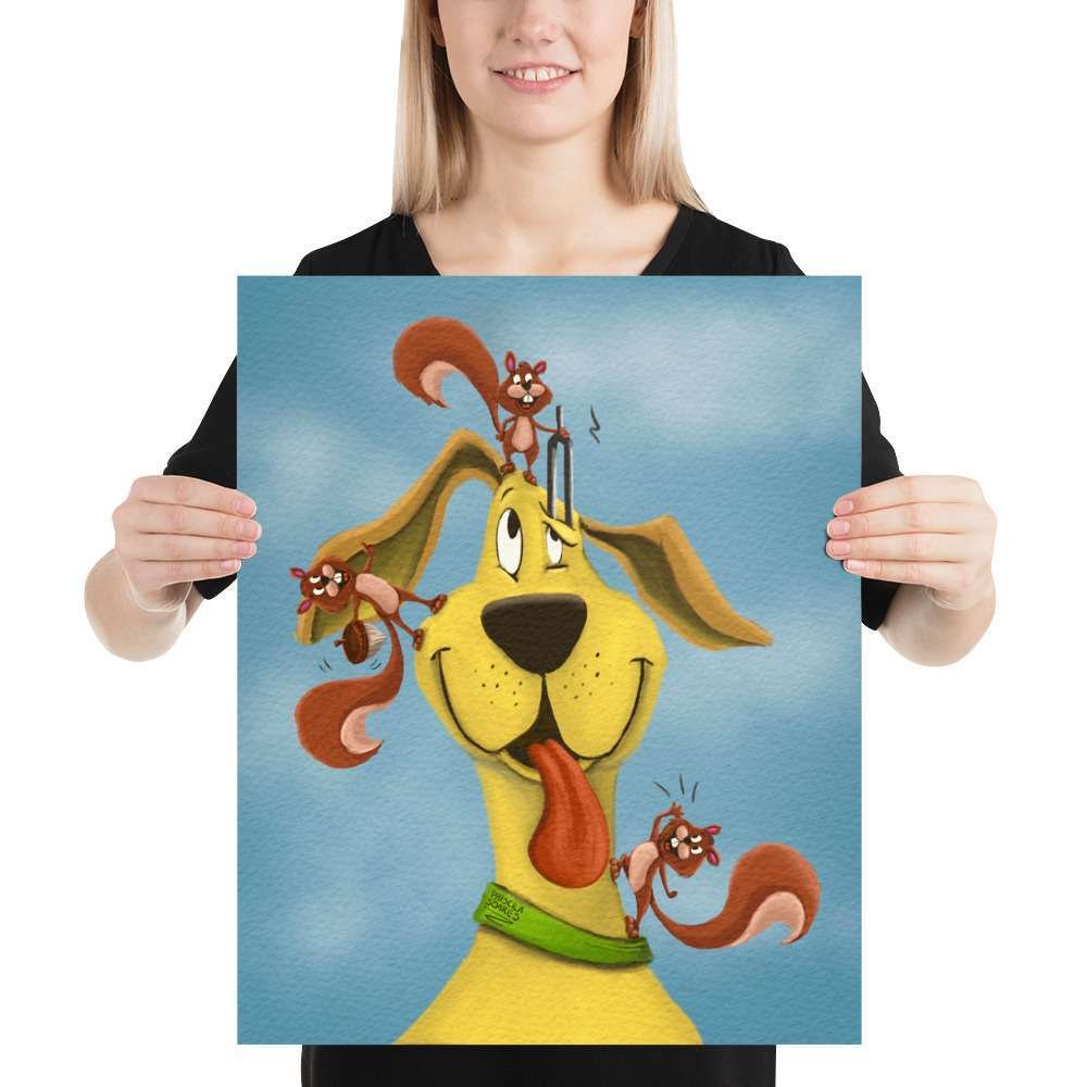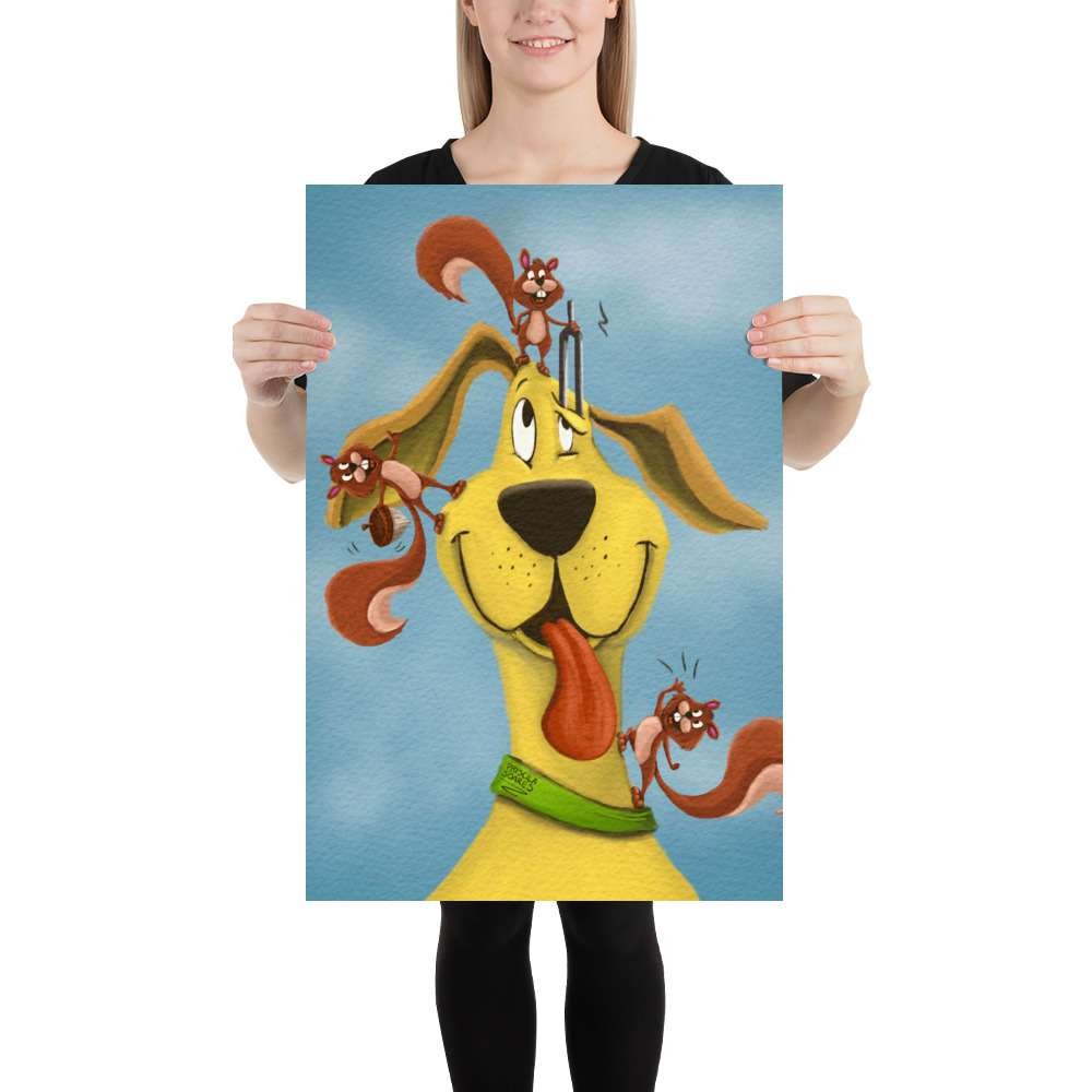 This charming and whimsical illustration captures a heartwarming scene of a dog getting its ears checked by three helpful squirrels using an otoscope, a tuning fork, and a hearing aid. Perfect for animal lovers, veterinarians, audiologists, and anyone who appreciates the magic of hearing health, this print blends science with storytelling in a delightful, nature-inspired way.