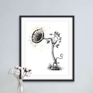 This illustration reimagines the eardrum and the three ear bones—the malleus, incus, and stapes—as a whimsical plant. The eardrum serves as the central bloom, with the intricate shapes of the ear bones forming elegant stems. Delicate leaves sprout from the ligaments, creating a harmonious blend of anatomy and nature. The hand-drawn pencil strokes add a raw, organic feel, making it a perfect piece for audiologists or ear medical professionals who appreciate both the science and art of hearing.