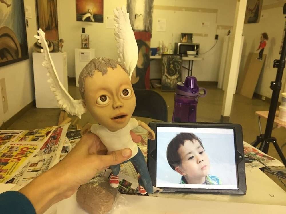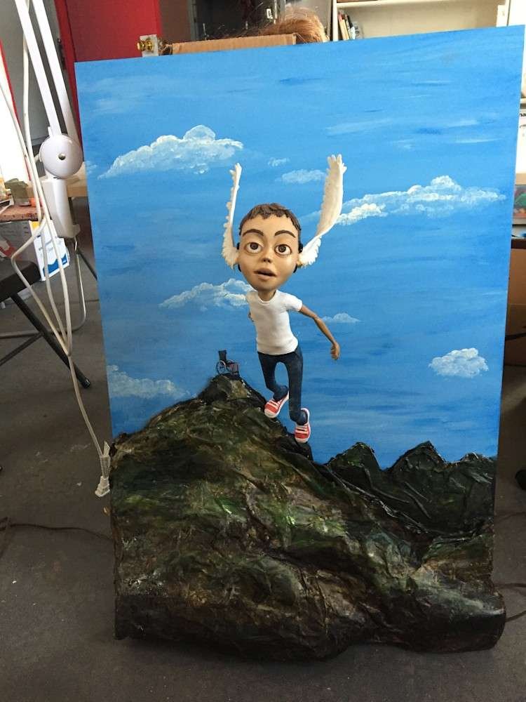 •Medium: Mixed media on wood (paper mache, cold porcelain and acrylic paint)