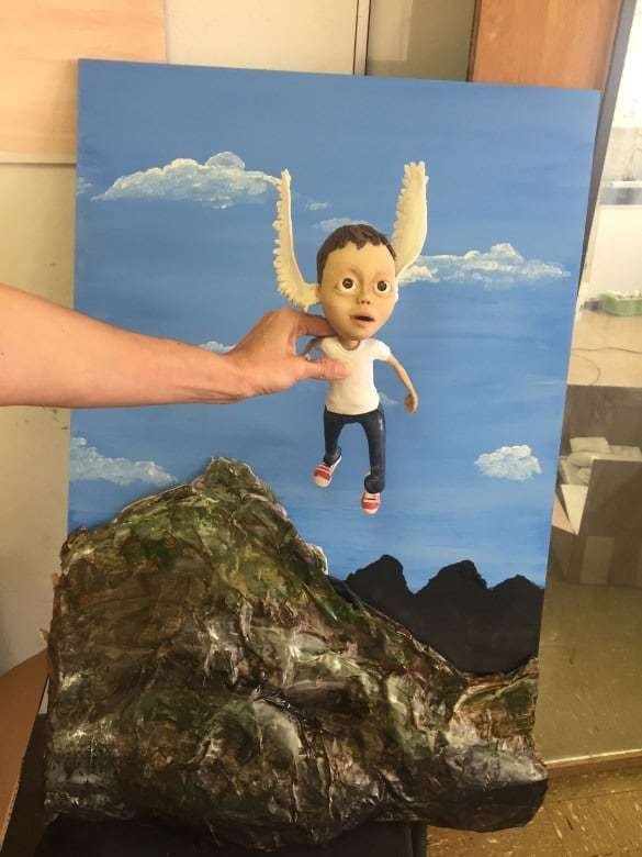Gerard is shown wearing cochlear implants, with wings sprouting from his ears, symbolizing his ability to break barriers and fly to the places he chooses. The piece beautifully reflects his journey of embracing who he is—unapologetically and unashamedly—while paying homage to his strength and the love and pride his family has for him.