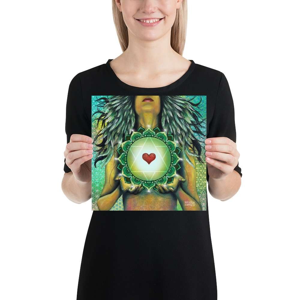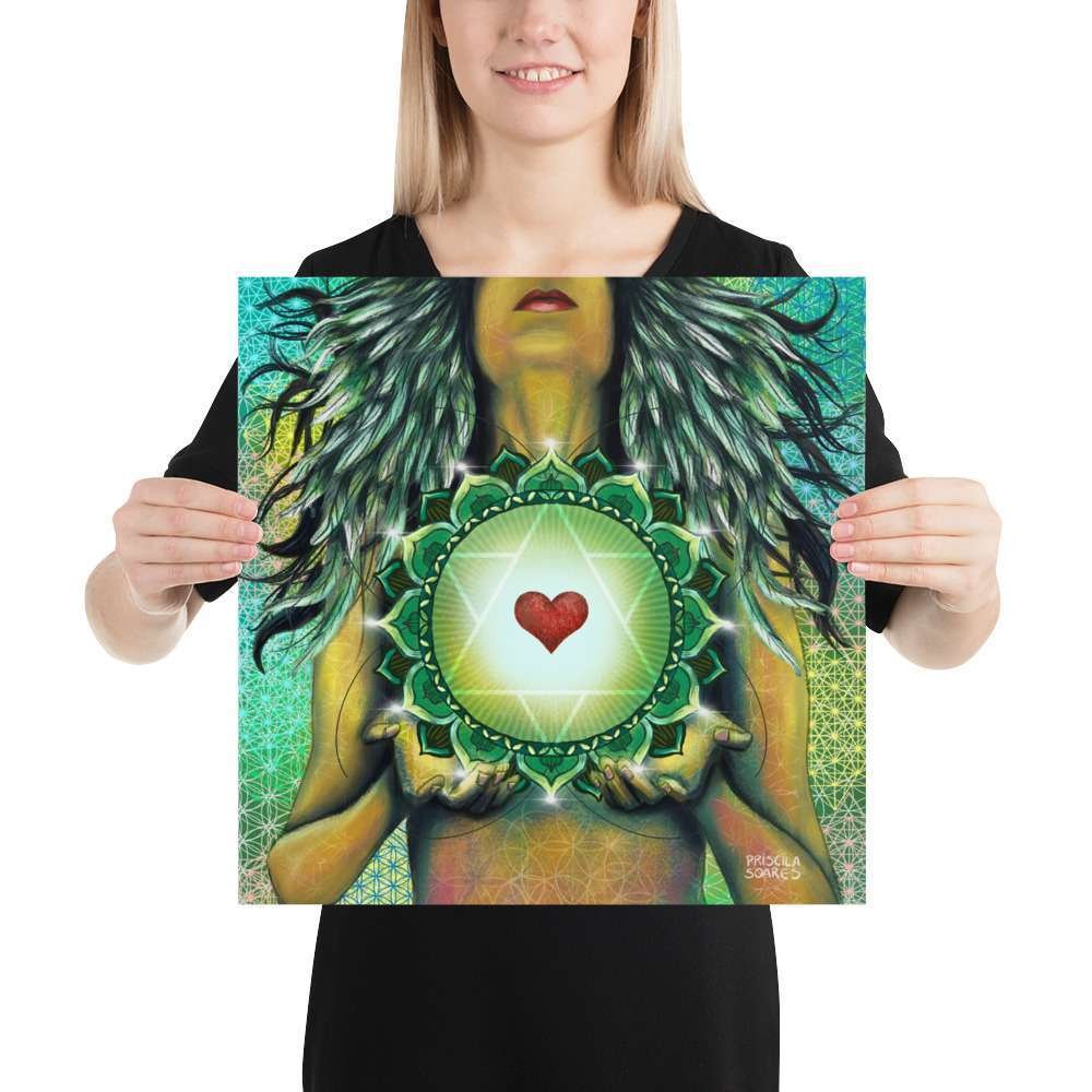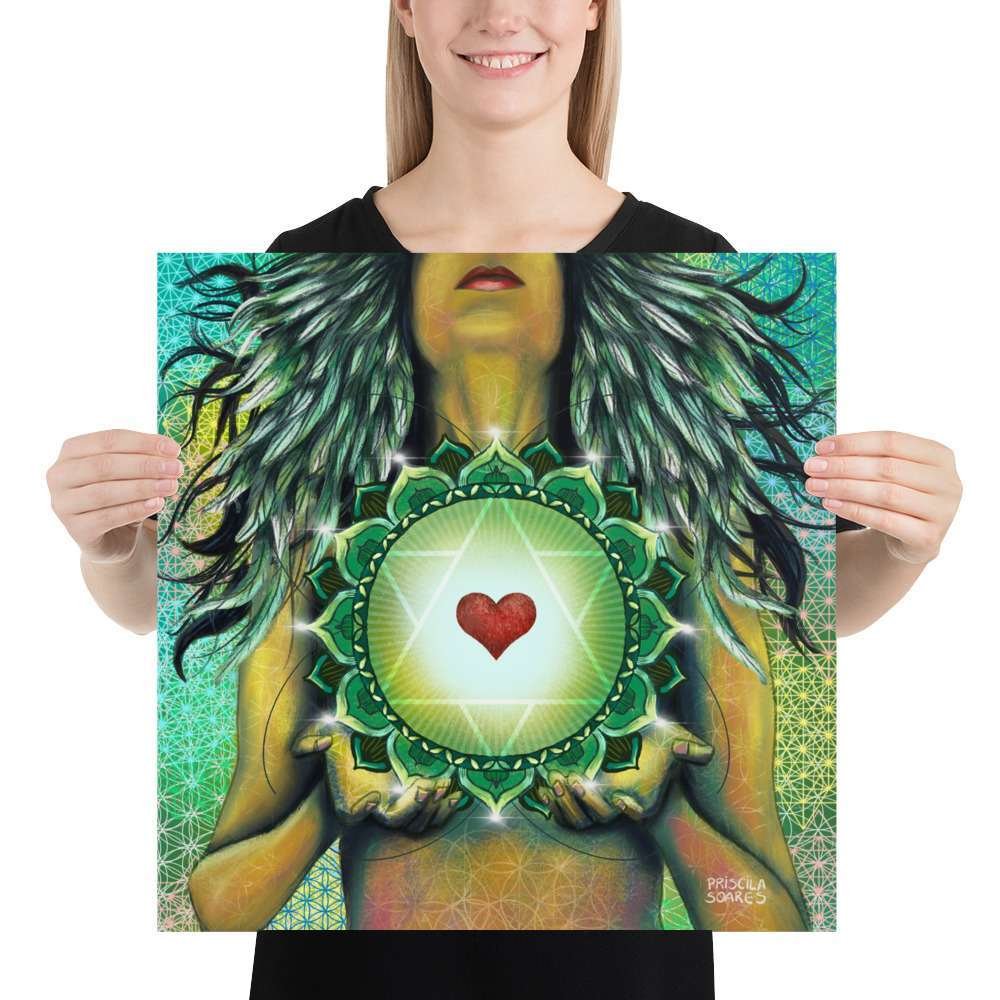 Anahata or heart chakra is the fourth primary chakra, according to Hindu Yogic, Shakta and Buddhist Tantric traditions. In Sanskrit, anahata means “unhurt, unstruck, and unbeaten”. Anahata is associated with balance, calmness, and serenity. So here is my painting, not only in honor of her healing process but also shared here to serve a purpose to all the ones who feel they need a stronger connection with their own heart’s desires. A great piece to add to your altar, vision board, or anywhere you may need to be reminded of its powerful message.