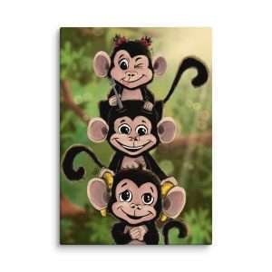 These three mischievous little monkeys are all about fun and hearing health! Stacked on top of each other in a playful balancing act, the bottom monkey is getting “fitted” with banana hearing aids, while the middle monkey is being tested with a tuning fork by the top monkey. This whimsical and adorable illustration brings laughter and curiosity to pediatric audiology offices, hearing clinics, classrooms, and children’s spaces. Perfect for hearing doctors, teachers, and kids alike, this print makes learning about hearing health engaging and fun!
