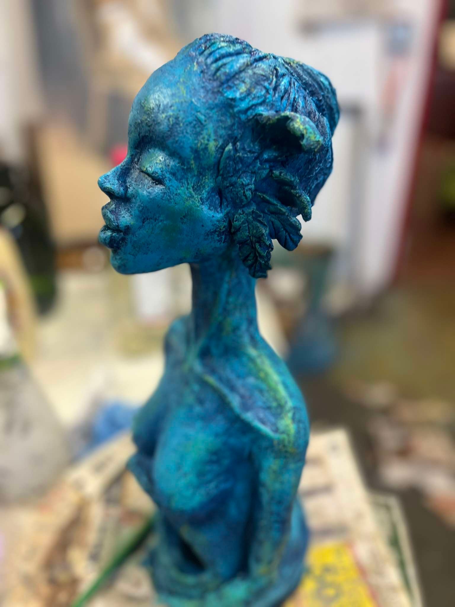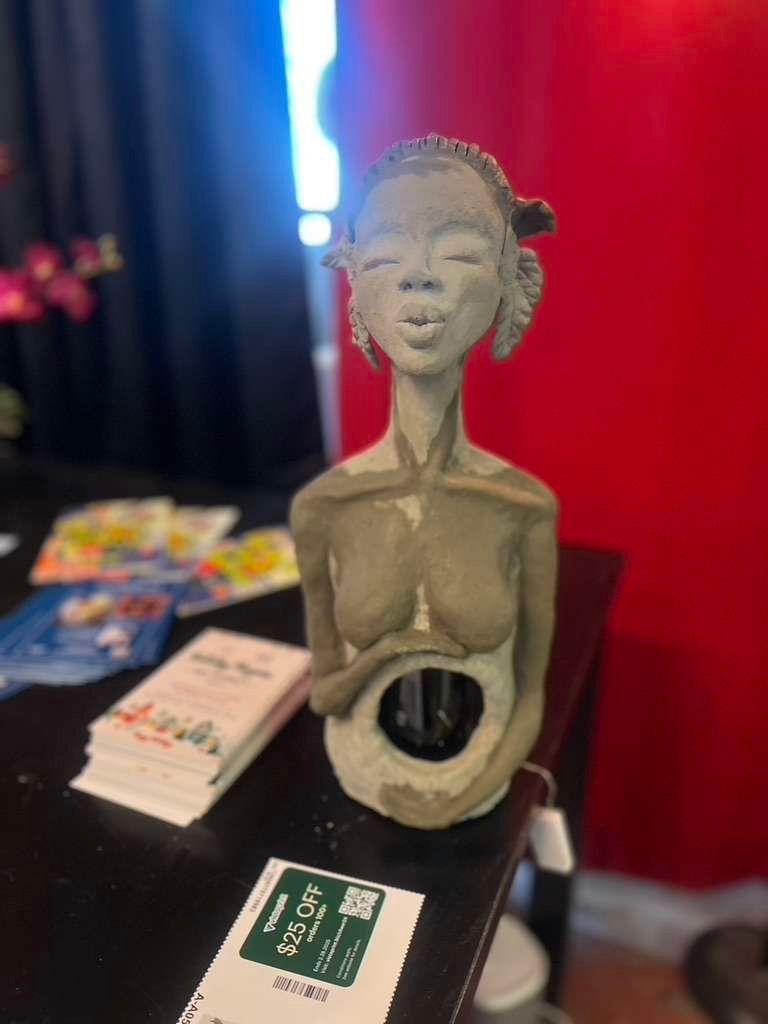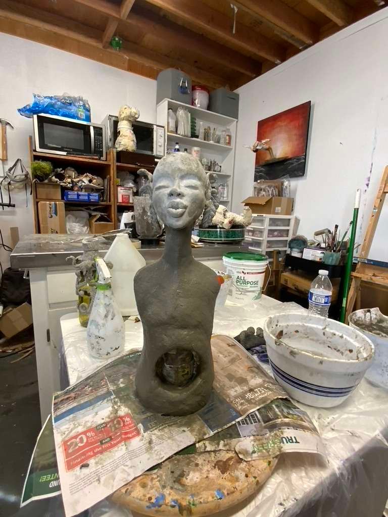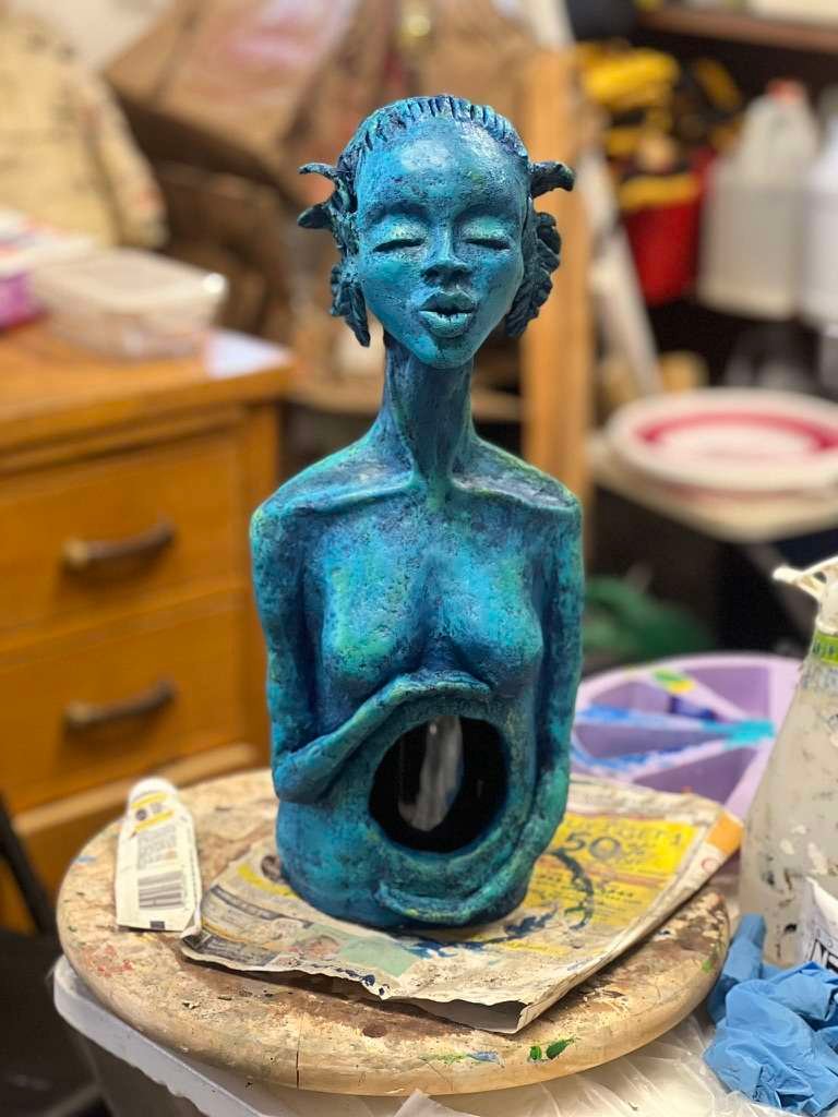 Bring a touch of nature and artistry to your home or garden with this unique Mother Earth sculpture, handcrafted from durable cement paper mache. Designed as a hollow form, it beautifully cradles a wine bottle filled with rechargeable fairy lights, casting a warm, magical glow. With intricate textures and an organic feel, this piece symbolizes the nurturing power of the earth, making it a perfect centerpiece for any space that celebrates nature, creativity, and light.