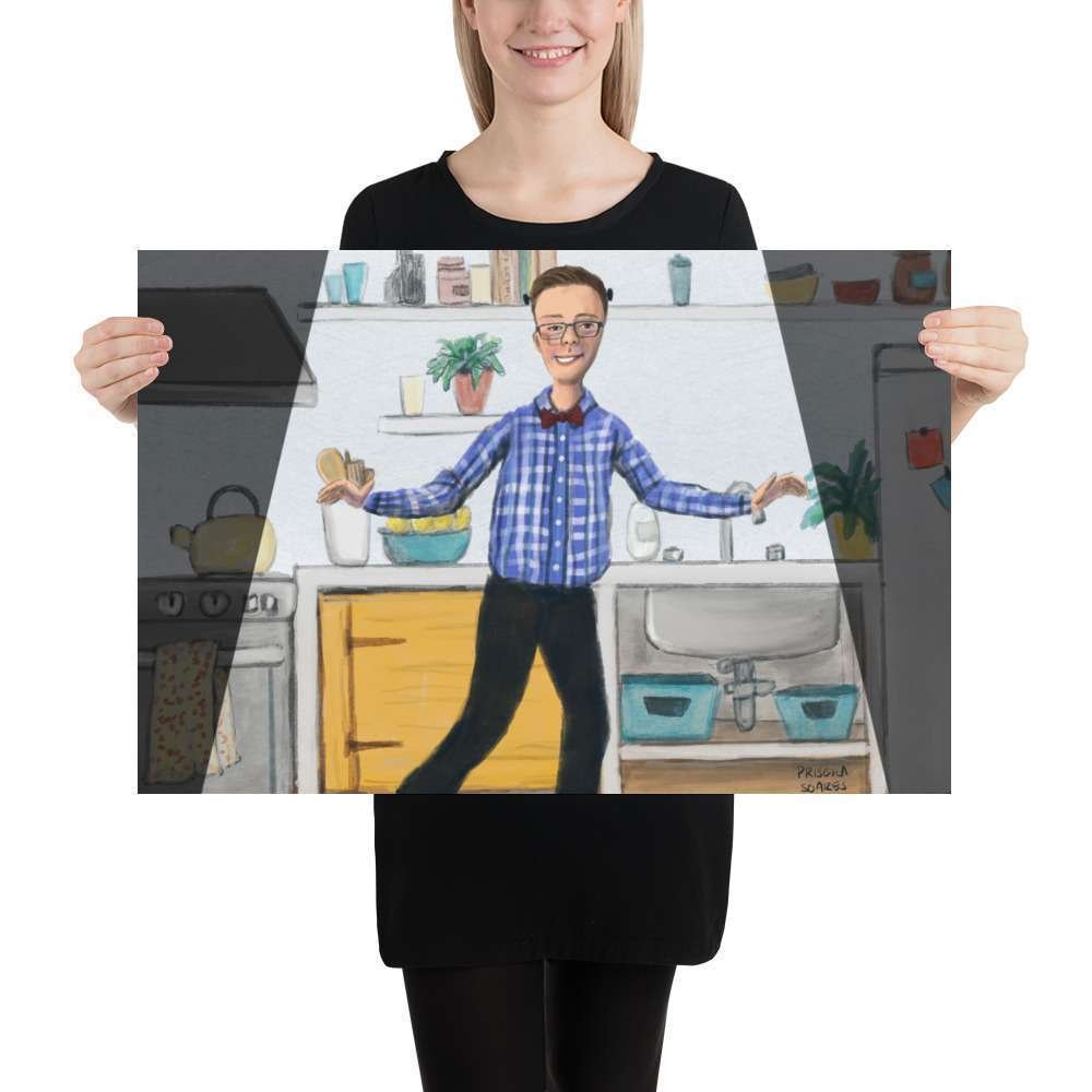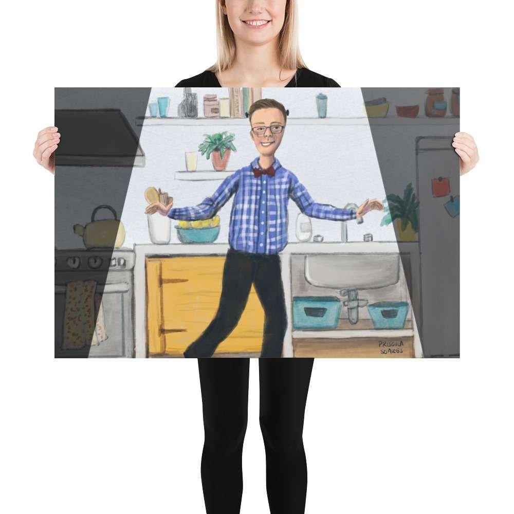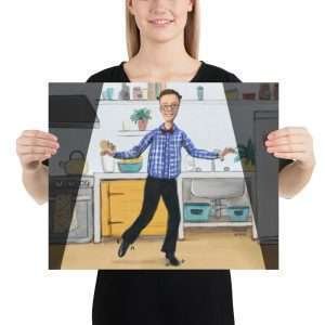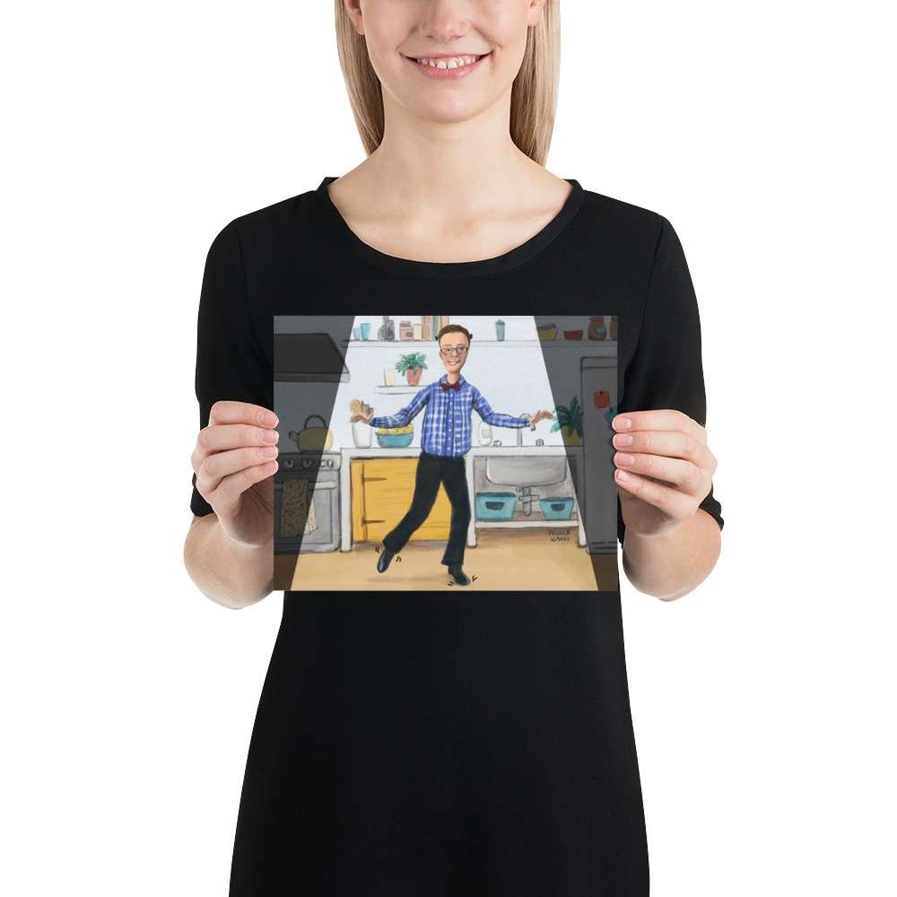 The story of Evan discovering that his shoes make tapping sounds was an absolute delight to portray! This time I decided to go for a more illustrative approach, imagining what it would be like for Evan to enjoy that unique sound while dancing happily in the kitchen, as if he’s a professional tap dancer filling his environment with his positive energy.