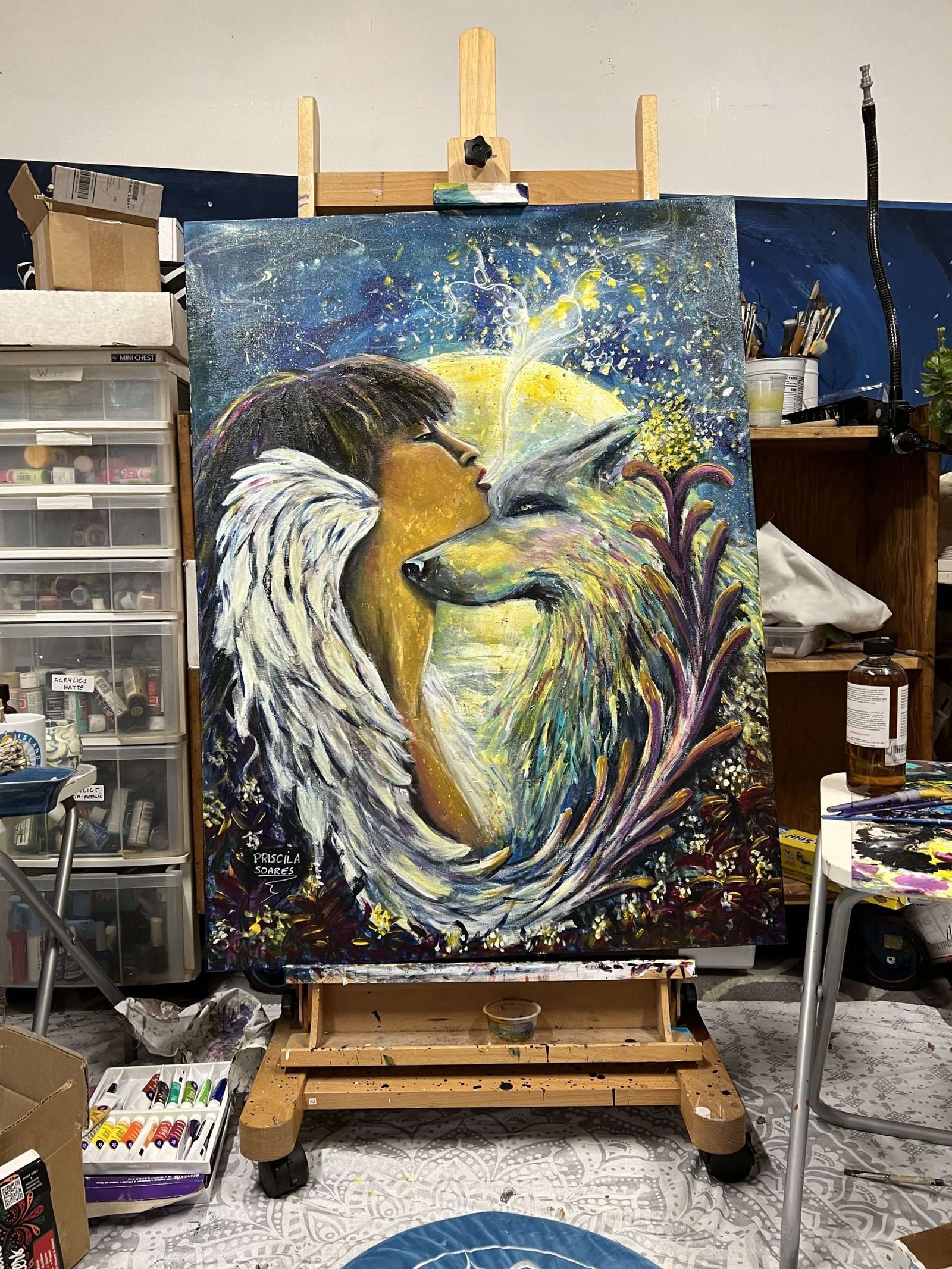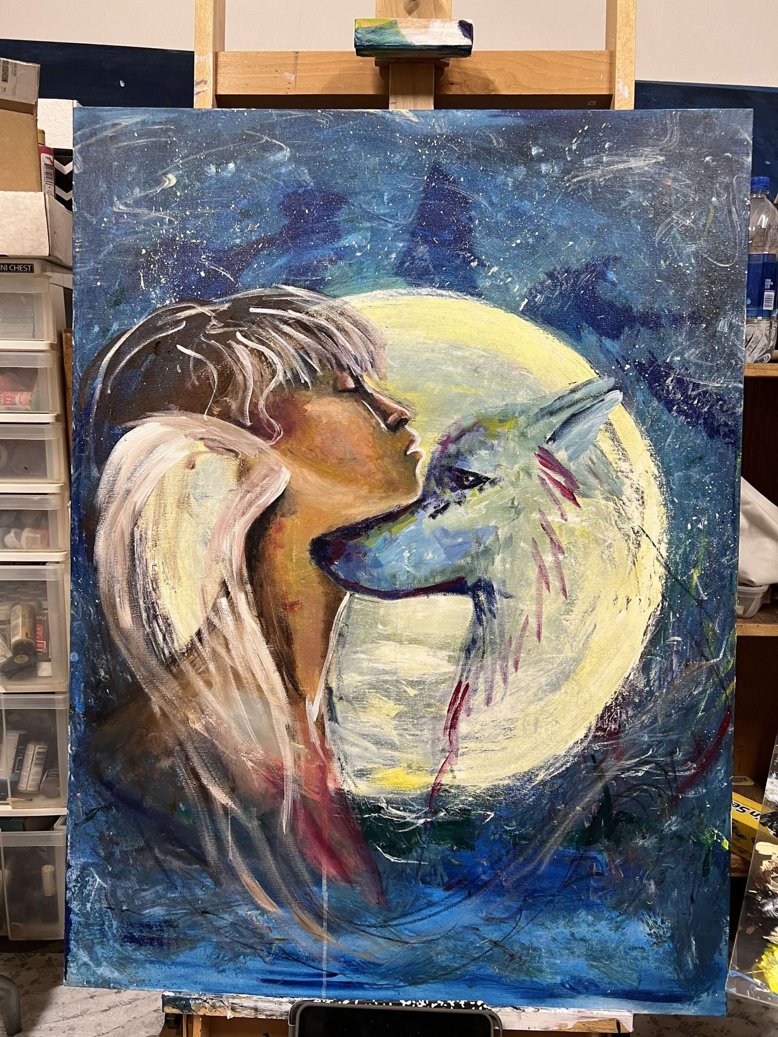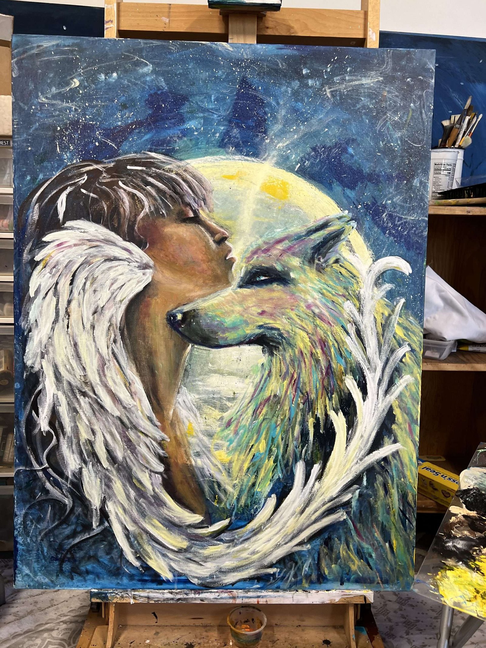 The Wolf is an evocative acrylic painting on canvas that captures the essence of loyalty, family, instinct, and intelligence. Representing a steadfast guardian, the wolf watches from a distance, offering strength and a reminder to protect your boundaries whether physical, emotional, spiritual, or beyond.
