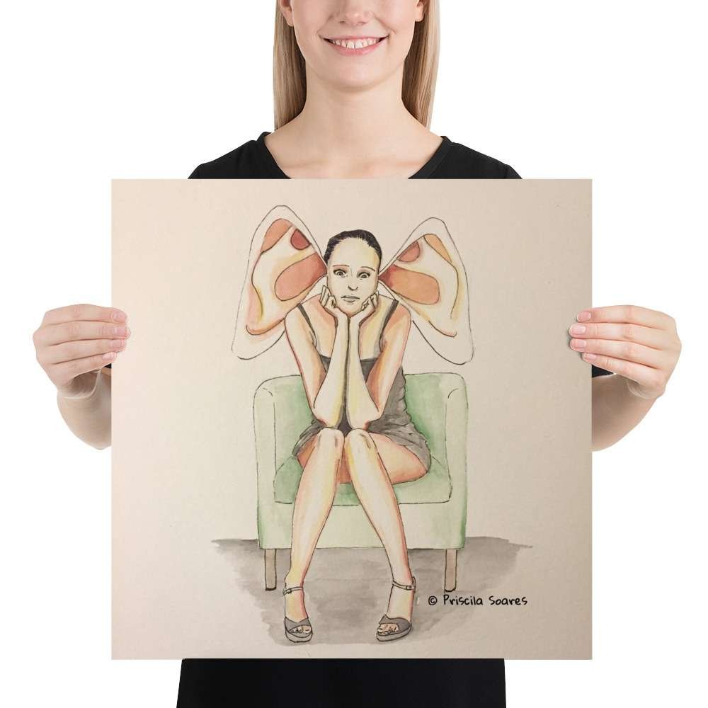 You’re Not Alone captures the isolation I often feel in social situations because of my hearing loss. In this painting, I depict a woman sitting alone in a chair at a party, with exaggerated, oversized ears that represent the emotional weight and struggle of hearing loss, keeping her separated from the lively energy around her. The title You’re Not Alone reflects that many of us with hearing loss experience similar feelings during social events. Through this piece, I want to convey that while hearing loss can feel isolating, it’s a shared experience, and no one with hearing loss is truly alone in their journey.